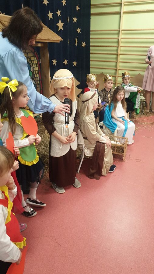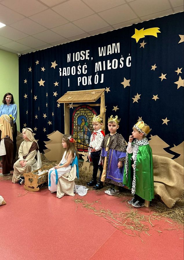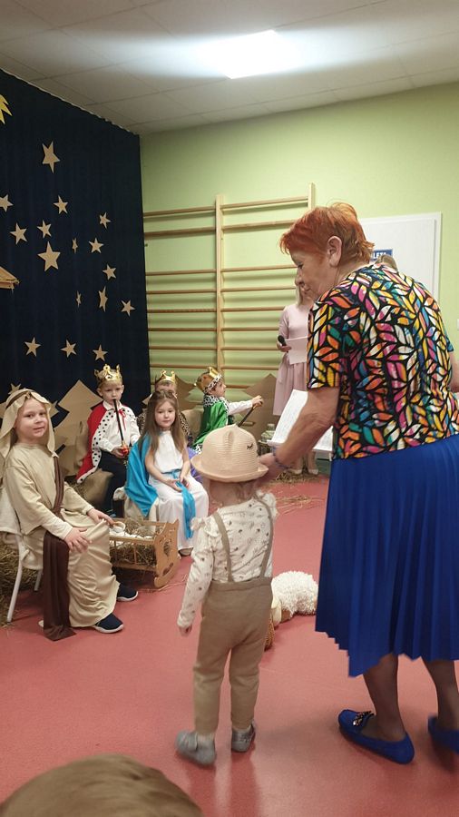 Dnia 23 stycznia br. odbyły się w naszym przedszkolu jasełka: "NIOSĘ WAM RADOŚĆ, MIŁOŚĆ I POKÓJ", w obsadzie aktorskiej dzieci Przedszkola OAZA, a odbiorcami stali się seniorzy: Babcie i Dziadkowie naszych pociech! Jak zawsze, wszystkich powitała Pani Dyrektor Sylwia Górczyńska, a swoją pomocą w czasie przedstawienia służyli nauczyciele - wszystko się udało - a radość wnuków udzieliła się wszystkim! Nie mogło zabraknąć skromnego poczęstunku! Naszym Seniorom życzymy wszystkiego najlepszego i 100 lat! Dziękujemy!