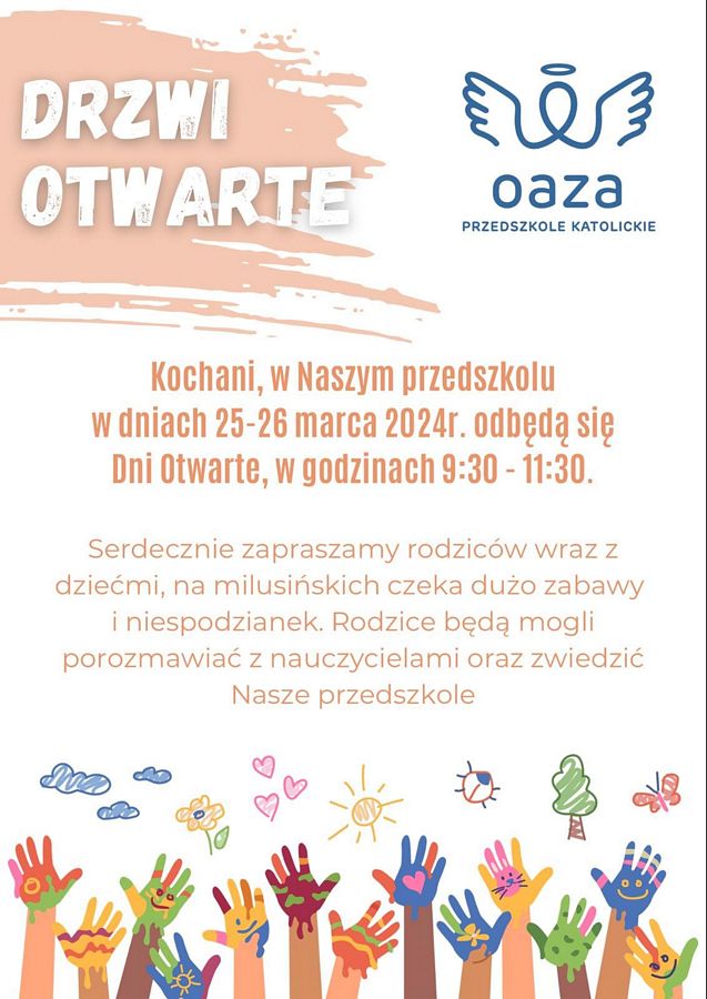 Kochani, w naszym przedszkolu w dniach 25-26 marca 2024r odbędą się Dni Otwarte, w godzinach 9.30 - 11.30.