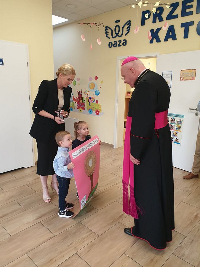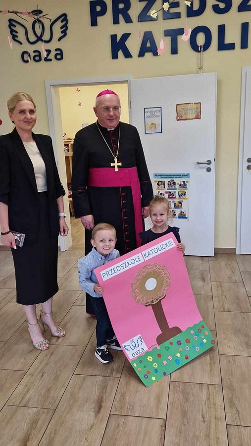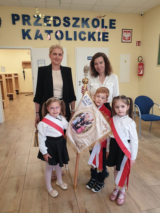 Dnia 14.06.2024r mieliśmy zaszczyt uczestniczyć w historycznym wydarzeniu - uroczystości nadania imienia naszemu przedszkolu i poświęcenia sztandaru. Tego dnia biskup włocławski Krzysztof Wętkowski poświęcił relikwie, które były z nami już od 5.12.2023r oraz sztandar, który został zakupiony dzięki darczyńcą. To spotkanie, tak piękne i wzruszające wniosło wiele ciepła do naszego codziennego przedszkolnego życia. Pragniemy, aby bł. Rodzina Ulmów orędowała za rodzinami dzieci oraz całą społecznością przedszkola. Nazwa naszego przedszkola ma od dziś nowe brzmienie Przedszkole Katolickie OAZA im. bł. Rodziny Ulmów.