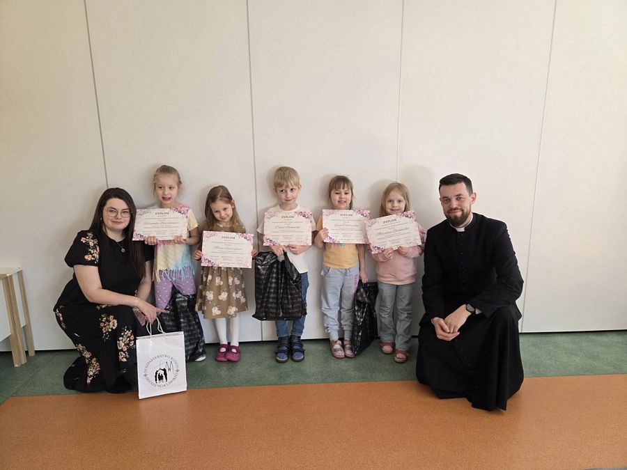 W dniu 26.03.2025r. W Koninie, mieliśmy przyjemność uczestniczyć w podsumowaniu i rozdaniu nagród w konkursie plastycznym "Rodzina nadzieją świata", organizowanym przez Duszpasterstwo Diecezji Włocławskiej. Jedną z lureatek konkursu była nasza uczennica, która zajęła III miejsce w kategorii przedszkolnej. Pozostali uczestnicy konkursu otrzymali osobiście, od księdza Piotra Wolnego Dyrektora Duszpasterstwa Rodzin Diecezji Włocławskiej dyplomy i upominki.