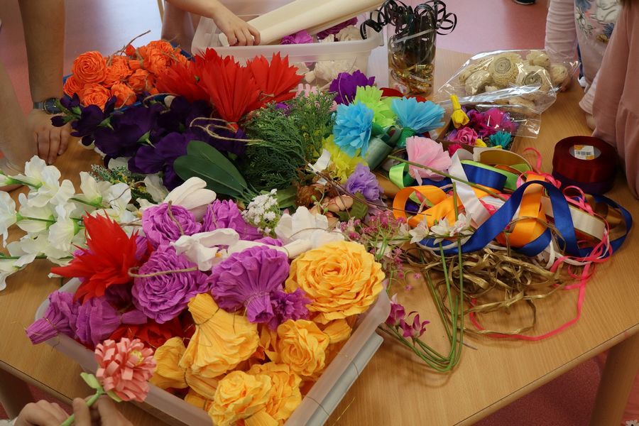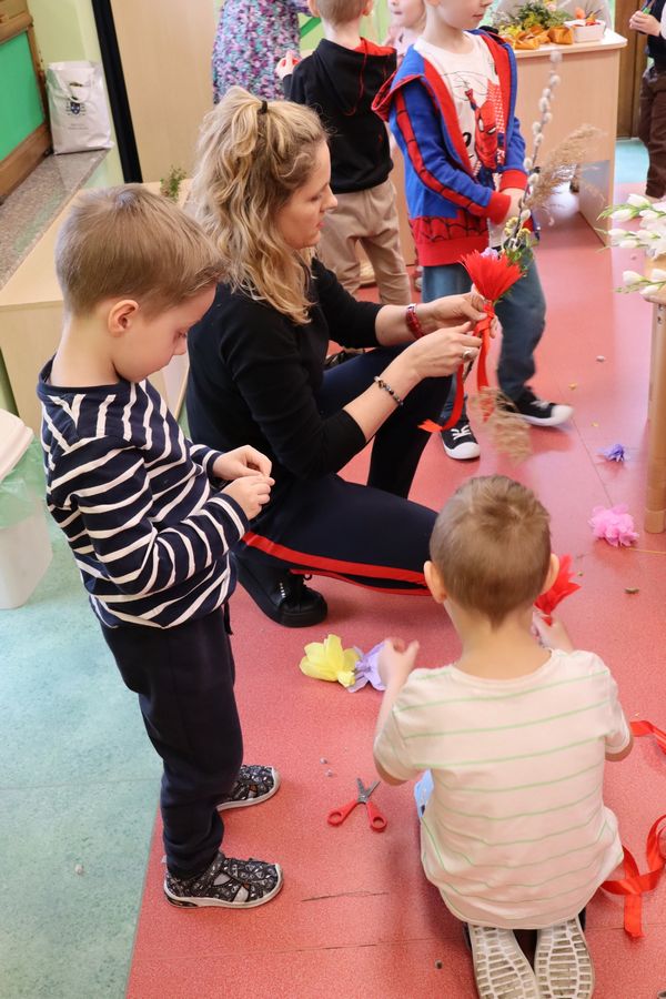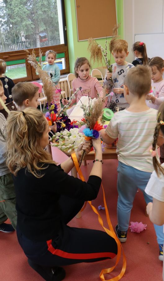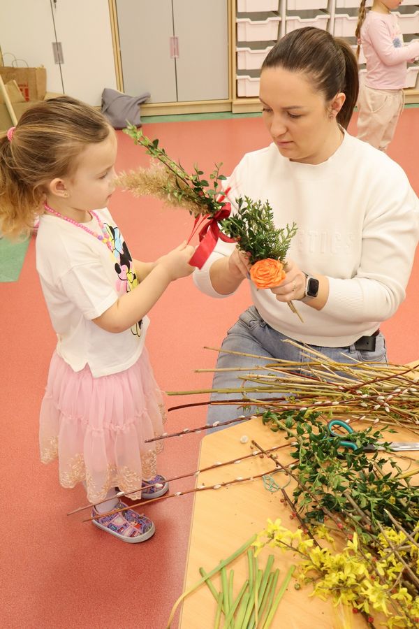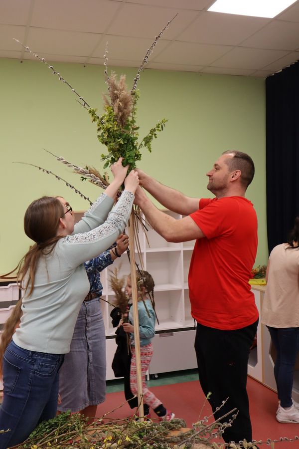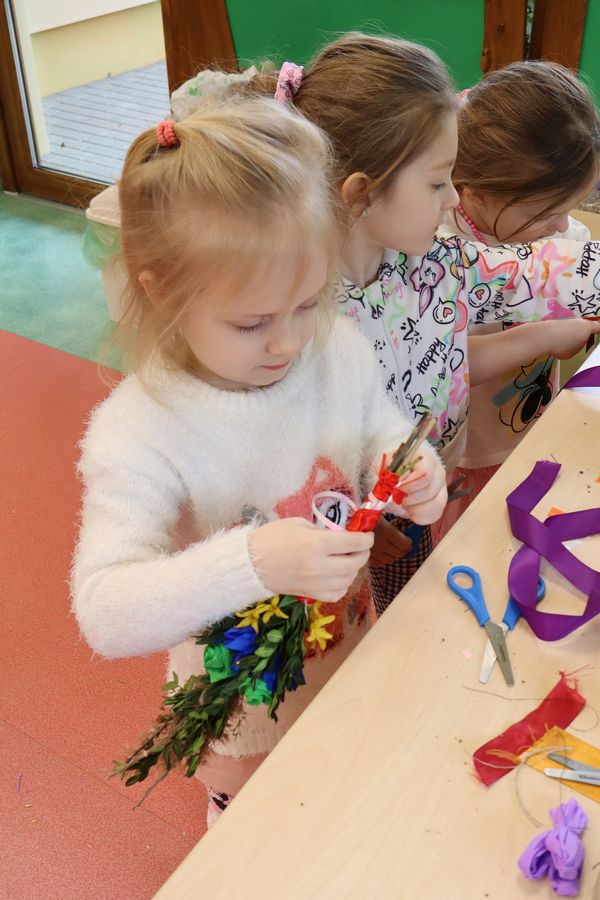 9 kwietnia w naszym przedszkolu odbyły się Warsztaty Wielkanocne. Dzieci, przy pomocy rodziców i nauczycieli, z zaangażowaniem tworzyły swoje palmy wielkanocne. Rodzice przygotowali również palmę na konkurs parafialny do naszego kościoła. Serdecznie dziękujemy wszystkim rodzicom za przyniesione materiały oraz aktywny udział w warsztatach. Dzięki Wam atmosfera była pełna radości i przedświątecznego ciepła.